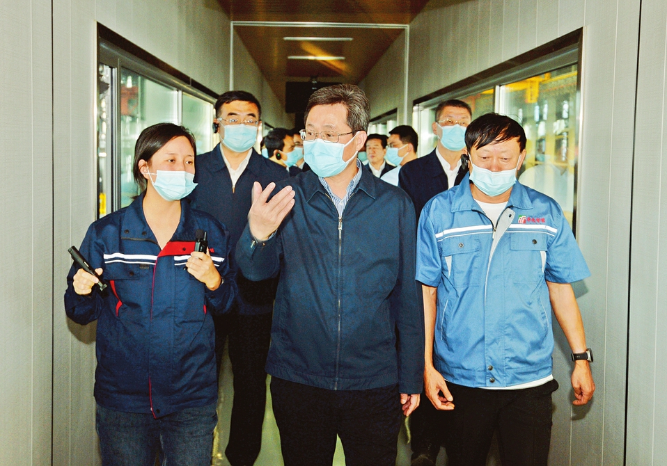 9月6日,省委副书记、省长蓝佛安来到位于繁峙县的山西华茂智能新材料有限公司,调研年产30万吨球墨铸管和13万吨铸件项目,认真察看生产设施及流程,了解产品类型、应用领域等情况。(李兆民摄)
