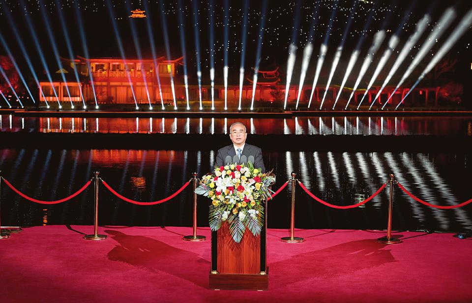 晚上20时,晋城市白马寺山康养示范区龙马湖广场流光溢彩、夜色宜人。郑建邦在大会开幕式上发表了热情洋溢的讲话,代表民革中央对大会召开致以热烈祝贺。他指出,中共十八大以来,以习近平同志为核心的中共中央坚持以人民为中心,把保障人民健康放在优先发展的战略位置,发出了建设健康中国的号召,极大推动了康养产业蓬勃发展。作为中国特色社会主义参政党,民革积极践行新发展理念,持续助推健康中国战略落地落实,不断探索康养产业发展新路径,为地方经济社会发展和经济转型升级积极贡献力量。山西拥有独特的山水风光、宜人的气候环境和深厚的历史文化底蕴,具有发展康养产业的绝佳禀赋。晋城瞄准建设文旅康养样板城市,大胆探索、努力实践,成为全国首个“世界康养示范城市”,在以康养产业发展促进资源型经济转型方面取得了积极成效。身处当今这个伟大的时代,展望康养这样朝阳的产业,我们充满了无限的希望、必胜的信心。希望山西准确把握康养产业发展方向,进一步明晰市场定位、拓展发展空间,努力把康养产业做得更好,把“康养山西、夏养山西”品牌叫得更响。也希望各方面携起手来,搭建起沟通合作的桥梁和纽带,凝聚起共同发展的智慧和力量,不断推动康养产业高质量发展,让健康中国战略结出更加丰硕的成果。