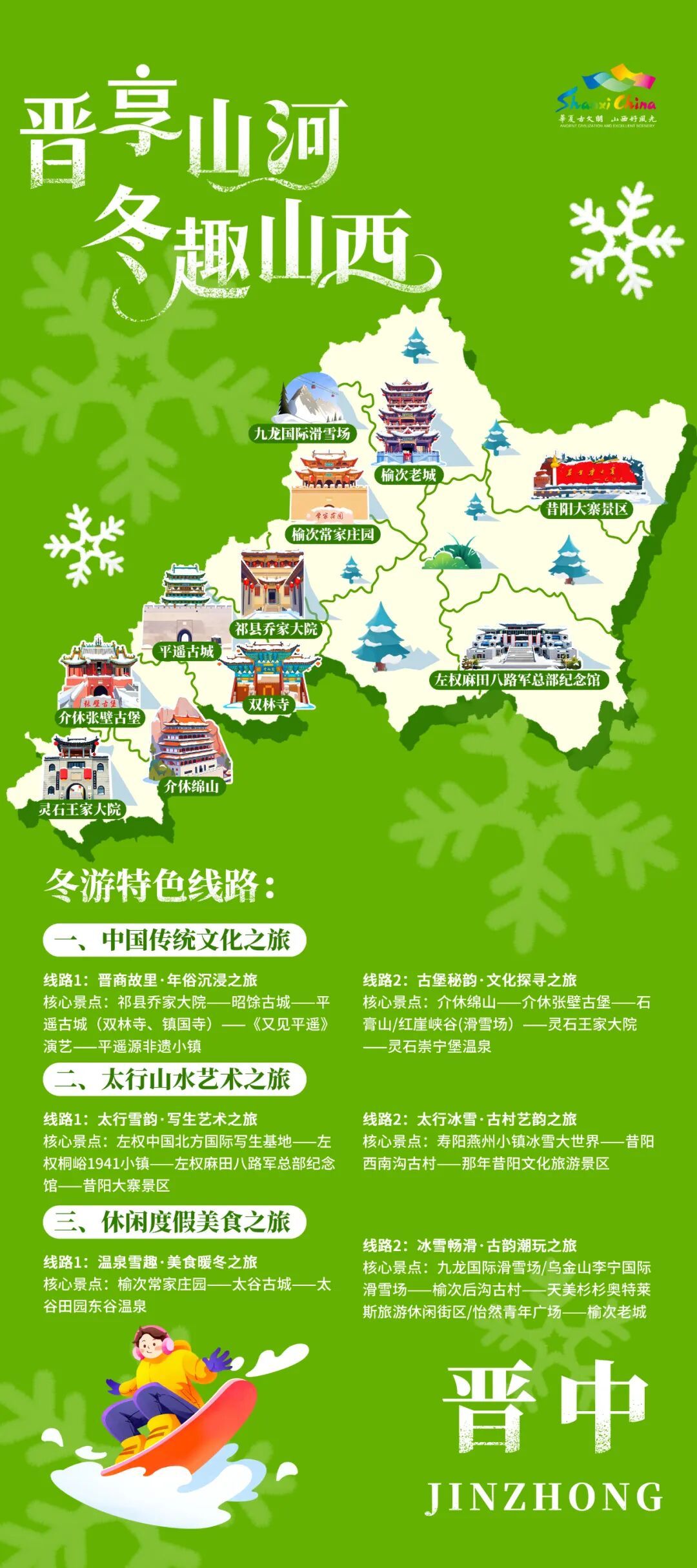 从太原的冰雪嘉年华到大同的古都冰雪秘境,从朔州的古建与冰雪交融到运城的黄河风情冰雪游,山西十一市以各具特色的冬游线路、丰富多元的冰雪体验和底蕴深厚的文旅资源,勾勒出一幅冬日山西的绝美画卷,邀八方游客共赴这场沉浸式的冬日山河之约,解锁山西冬日的独特魅力。