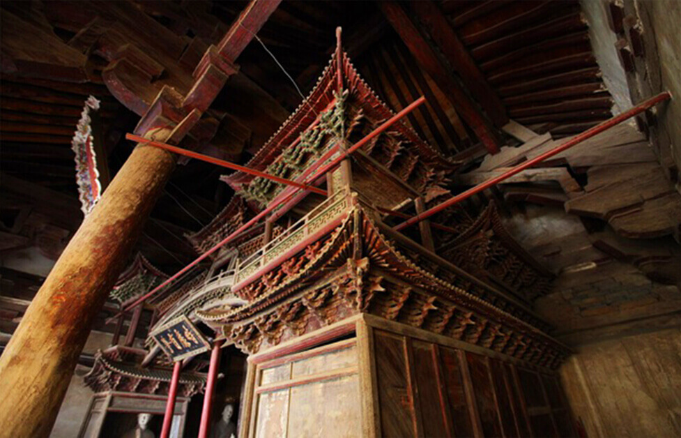 这座富丽堂皇“天宫楼阁”悬挂二仙殿半空,优美的造型,令众人在仰视中无不发出惊叹。据考证,这座神龛名叫“天宫壁藏”,乃罕见的宋代小木作原构。