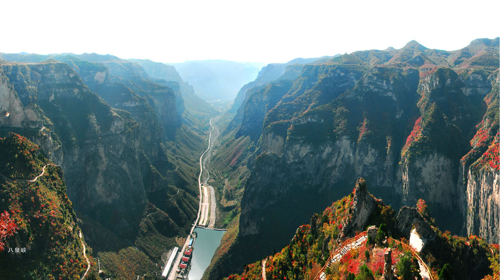 气势恢宏雄阔、百泉挂壁吐珠的八泉峡以峡称奇,以泉扬名。专家确认这里为“世界级极品旅游资源”,是“太行第一雄峡”,可以满足游客海陆空全方位游览。乘座208米的岩壁电梯,顺岩壁上下,峡内风景一览无余;凌空而建华北地区最长的拐弯索道也将于2015年投入使用。八泉峡内乘船能赏峡闻涛,登山可与鸟共舞,朝夕看日出日落,雾雨观祥云灵光。置身其间,如入蓬莱仙山、瑶台仙境一般,其风光之秀,景色之奇,期待您探幽揭秘!