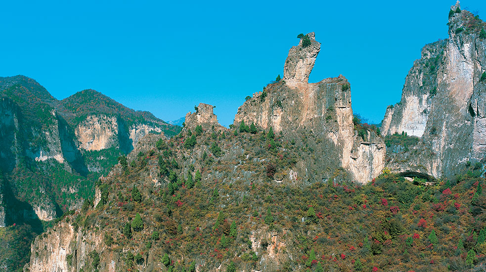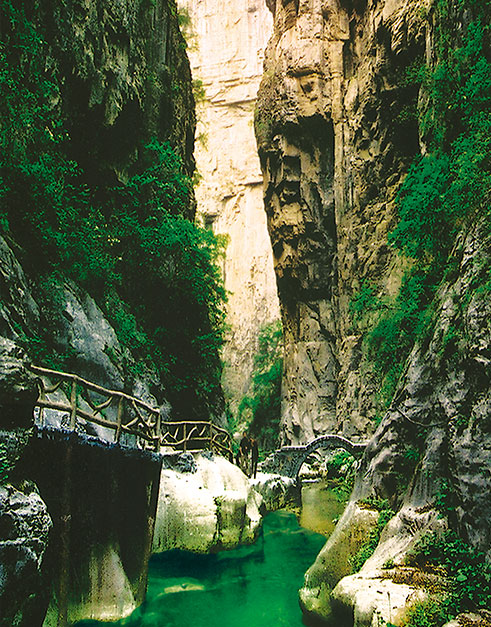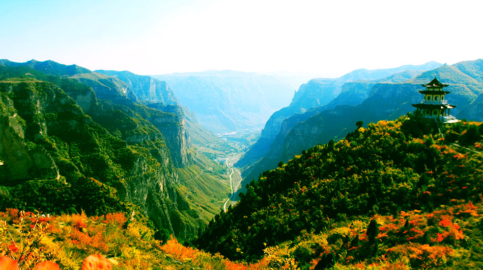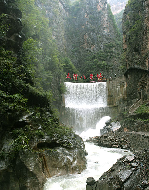 太行八泉峡,是太行山大峡谷群中品位最高,内涵最丰富,结构参差,气势宏大最具有代表性的一个景区。它南起桥上古桥,北至石子河畔,东负梯脑山脉,西连石河沐岑脊。境内:海拔最高的山峰达1700余米,涧壑最低处仅600余米,相对落差达1100余米,总面积170平方公里。峡谷全长11公里,流城面积60.3平方公里。泉源300余处,飞瀑30余条,主源八道水流量1m3/秒。现已开发面积为32.14平方公里,依地理位置及内容设置,共分四大景区,十大景点,百余个景观,四大旅游项目。四大景区为:“伟人峰、伯阳山景区,梯脑山景区(云崖栈、大瑶洼、天上人家),八道水景区、石河沐山脉景区”。旅游项目为“地上看、水中游、天上观、云中行”。而分布在石河沐、梯脑山两条山脉之间的古村、古寨、古寺、古庙及山林景观、古代战争遗迹等90余处景点景观尚待开发。
