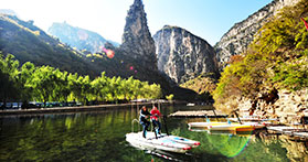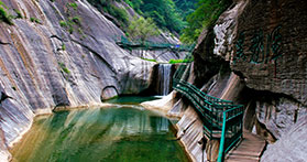 青龙峡是太行山大峡谷旅游区的主要景点之一,因峡内有青龙潭,故名青龙峡。漫步景区,泉溪叮咚,瀑潭相连,泻玉喷珠,如入仙境。境内自然风光优美,悬崖峭壁林立,是攀岩、休闲、度假旅游的绝佳胜地。