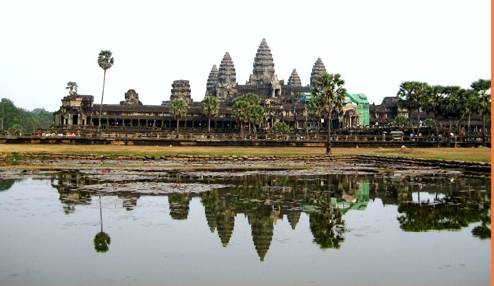 吴哥寺无疑是吴哥遗迹中最令人叹为观止的庙宇,吴哥寺是吴哥时代艺术鼎盛时期的代表建筑,主殿占地4万平方米,主塔高65米,是世界上最大的宗教建筑。吴哥寺遵循金刚宝座塔形式,三层平台上耸立着五座莲花塔,整座建筑充满向心力和向上的动势。根据印度教的传统,寺庙越高越好,最好能建在山顶上(如巴肯山),像吴哥寺这样建在平地上,就要造一座尽可能高的高台。巴戎寺同样属于这种“人造山”形式。吴哥寺的墙壁上布满了精美的浮雕,使得整座建筑更为华丽。底层雕塑以连环画的形式讲述印度教神话故事。二层以各种宗教图案为主,跳舞的仙女阿卜娑罗(Apsara)的形象是游客最喜欢合影的明星。吴哥窟的各个寺庙内有数千个阿卜娑罗雕像,其中吴哥寺和女王宫数量最多,雕塑也最精美。